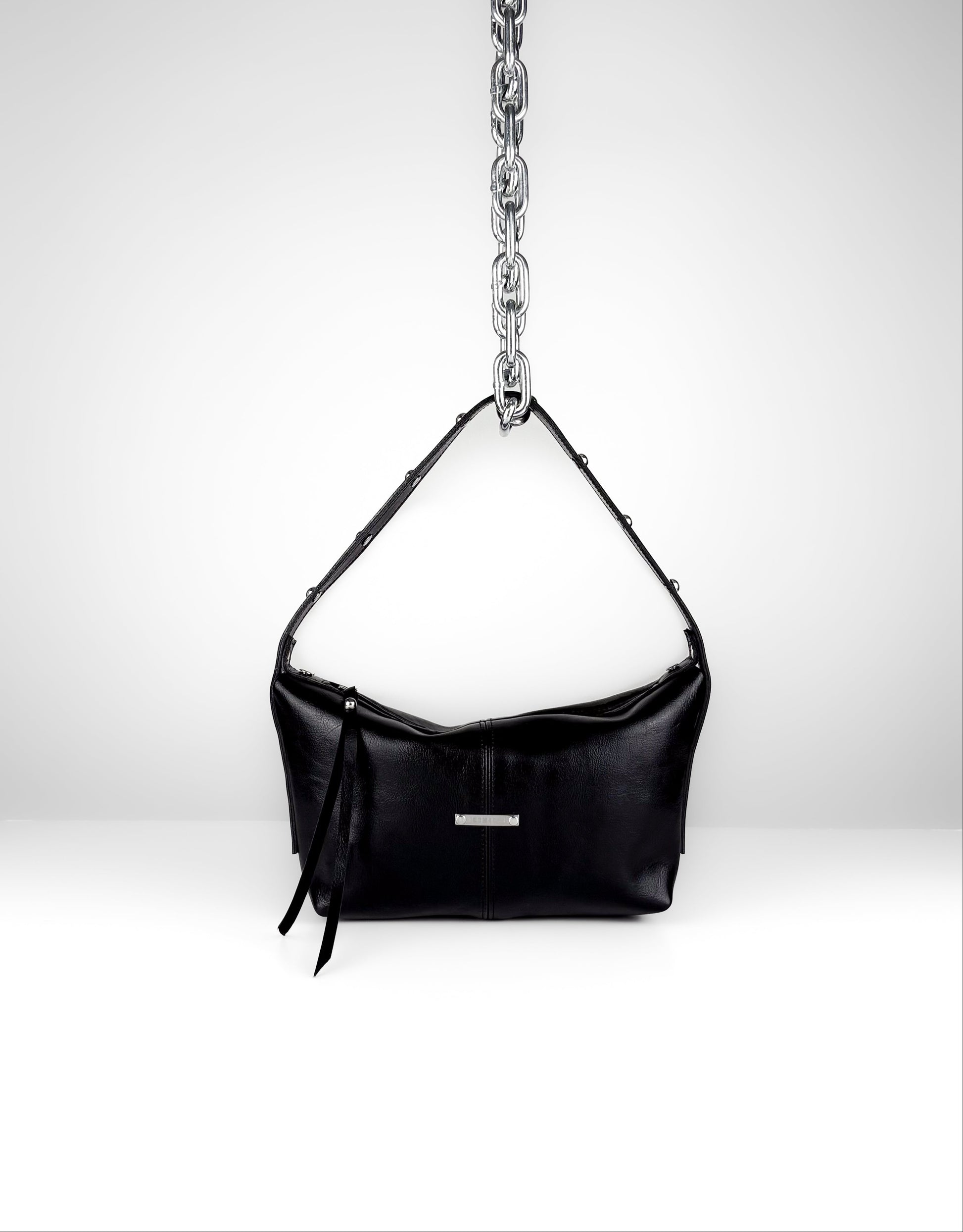 MATERIALS: Medium-weight coated Italian leather, 100% black silk lined interior