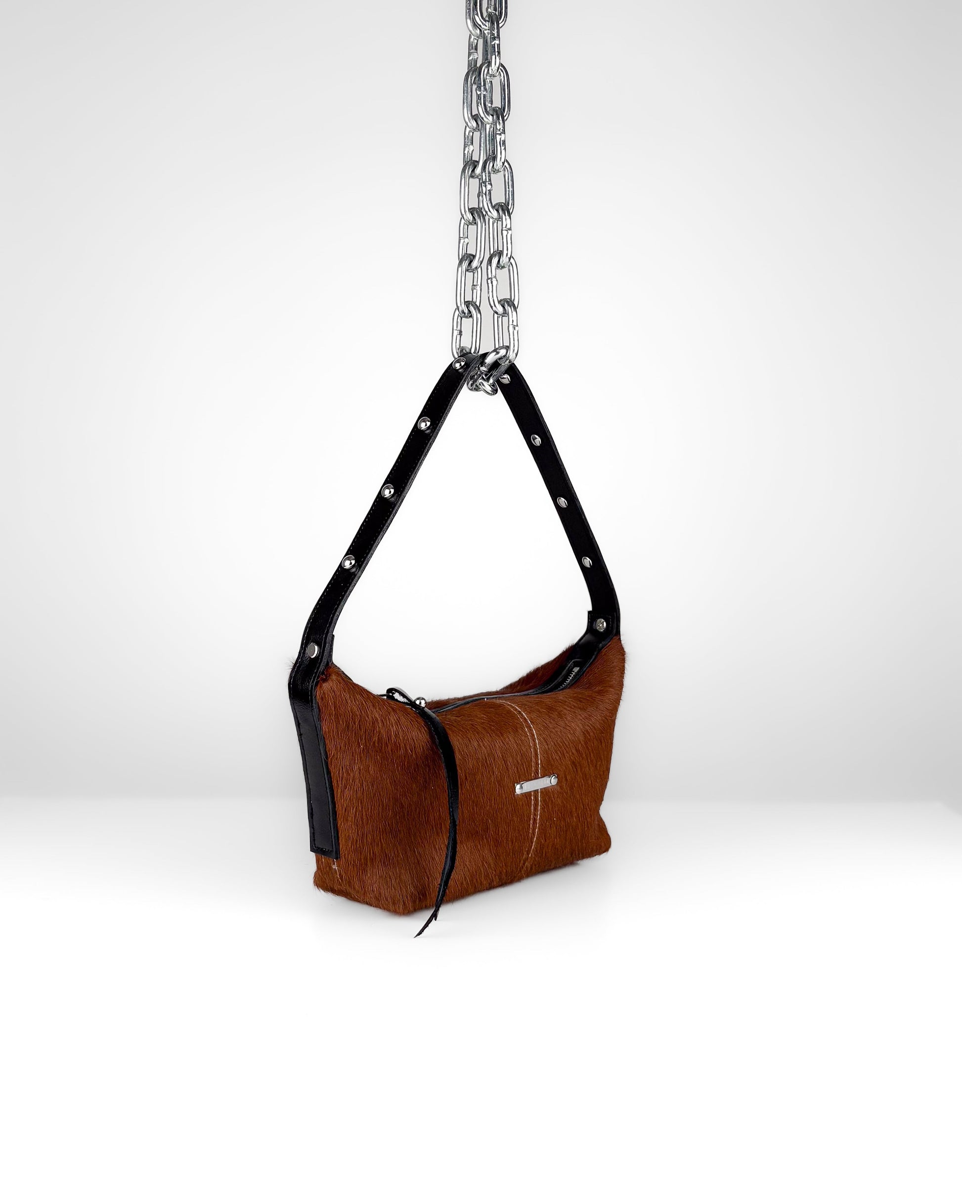 MATERIALS: Medium-weight hair-on hide in a warm chestnut tone, 100% black silk lined interior